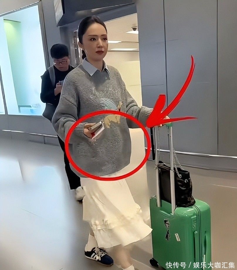 那天她身穿一件宽松款式的毛呢外套,腹部区域显得格外鼓胀,起初大家以为只是服装剪裁问题,并未多加留意。